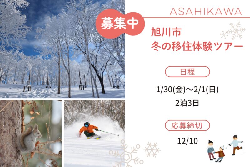 | 備考 | 北海道旭川市で、冬の暮らしをちょっと試せる3日間のツアーです。 家の暖かさ、街の雰囲気、先輩移住者や地元クリエイターとの出会いなど、「住んだらどんな感じ?」がリアルにわかります。 ファミリーやデザイン好きの方にぴったり。 1日目は、「冬の暮らし」を体験。 2日目は、興味や検討度によって選べる2つのコースをご用意しています。 3日目は、ツアーの感想や移住への不安にお応えする意見交換会! ■このツアーでできること ○移住者から直接話が聞ける 実際に移住した方々から、暮らしの様子や仕事探しのコツなど、ガイドブックでは分からないお話を気軽に聞くことができます。移住の疑問や不安を相談できる場として、ぜひ活用してみてください。 ○住まい×仕事のイメージが具体化 地元企業で働く方や起業された方、地域おこし協力隊の方など、さまざまな働き方の人と交流できます。住まいについては専門の方に相談できるので、冬の暖房や生活費など、気になることをぜひ聞いてみて。 ○冬の生活がリアルに分かる 雪の降らない地域で暮らしている方にとって、冬の旭川市はまったく新しい環境かもしれません。この機会に真冬の旭川を訪れて、実際の冬の暮らしをぜひ体験してみてください。 主催:合同会社ココ企画 |